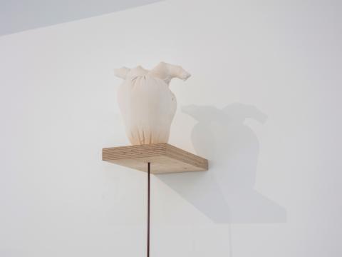 ‘Blessed', 2021, jesmonite, steel, paint, wooden shelf, 190 x 28 x 35 cm