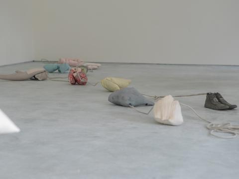 ‘Eleven', 2019, jesmonite, rope, concrete, 675 x 60 x 18 cm