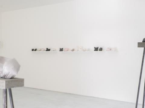 'Flock', 2013 - 21, plaster, concrete, jesmonite, steel fixings, various sizes approximately 25 x 8 x 12 cm each.