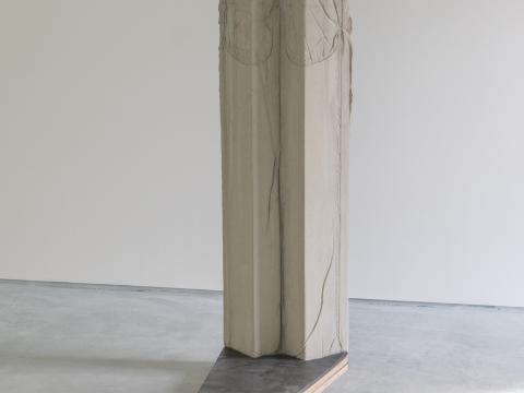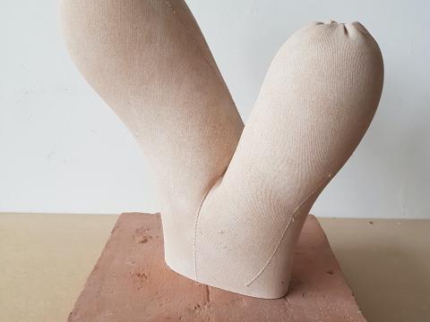 'Handsome Legs', 2021, fibro cement, polystyrene, steel, wood, lead, felt, 118 x 70 x 36 cm